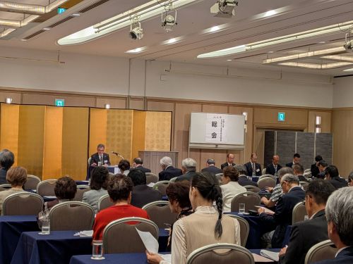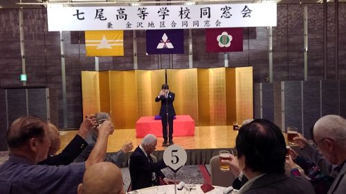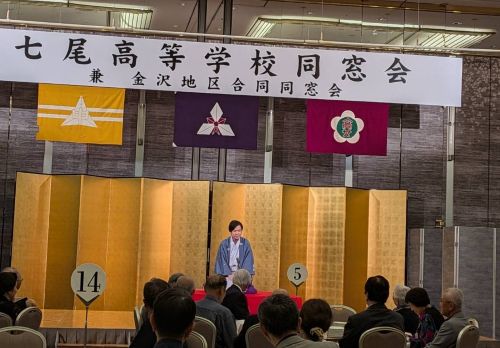 七尾高校同窓会と金沢地区合同同窓会は今年も合同にて開催されました。(石川県金沢市 ホテル日航金沢にて)【 総 会 】 総会では、令和6年度事業決算が報告され、引き続き よりよい活動がなされるようご提言をいただきながら 進行されました。 今年は役員改選が行われ、久保聡会長(高27)が再任、 副会長に木下義隆氏(高33)が新しく加わりました。【 懇 親 会 】 卒業生でもある 月亭方気さんに オープニングにふさわしい一席を披露していただきました 同窓会 会長 久保聡氏(高27) 学校長 樋上哲也氏(高36) 乾杯のご発声 金沢地区合同同窓会 会長 小石芳一氏(高32) 司会の平見夕紀さん(高43)